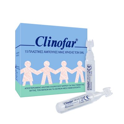 CLINOFAR Αποστειρωμένες Αμπούλες Φυσιολογικού Ορού για ρινική αποσυμφόρηση 15x5ml