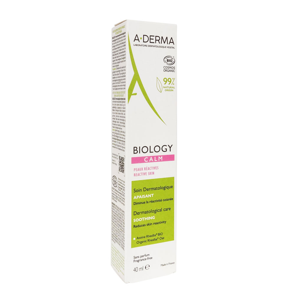 Η A-Derma Biology CALM Δερματολογική Καταπραϋντική Φροντίδα για το Αντιδραστικό Δέρμα, είναι ένα πιστοποιημένο βιολογικό προϊόν, που καταπραΰνει άμεσα το αντιδραστικό δέρμα, μειώνει το αίσθημα δυσφορίας και καύσου. Με 99% συστατικά φυσικής προέλευσης και λεπτόρρευστη υφή χωρίς άρωμα, εξισορροπεί και ενυδατώνει το δέρμα αποτελεσματικά.