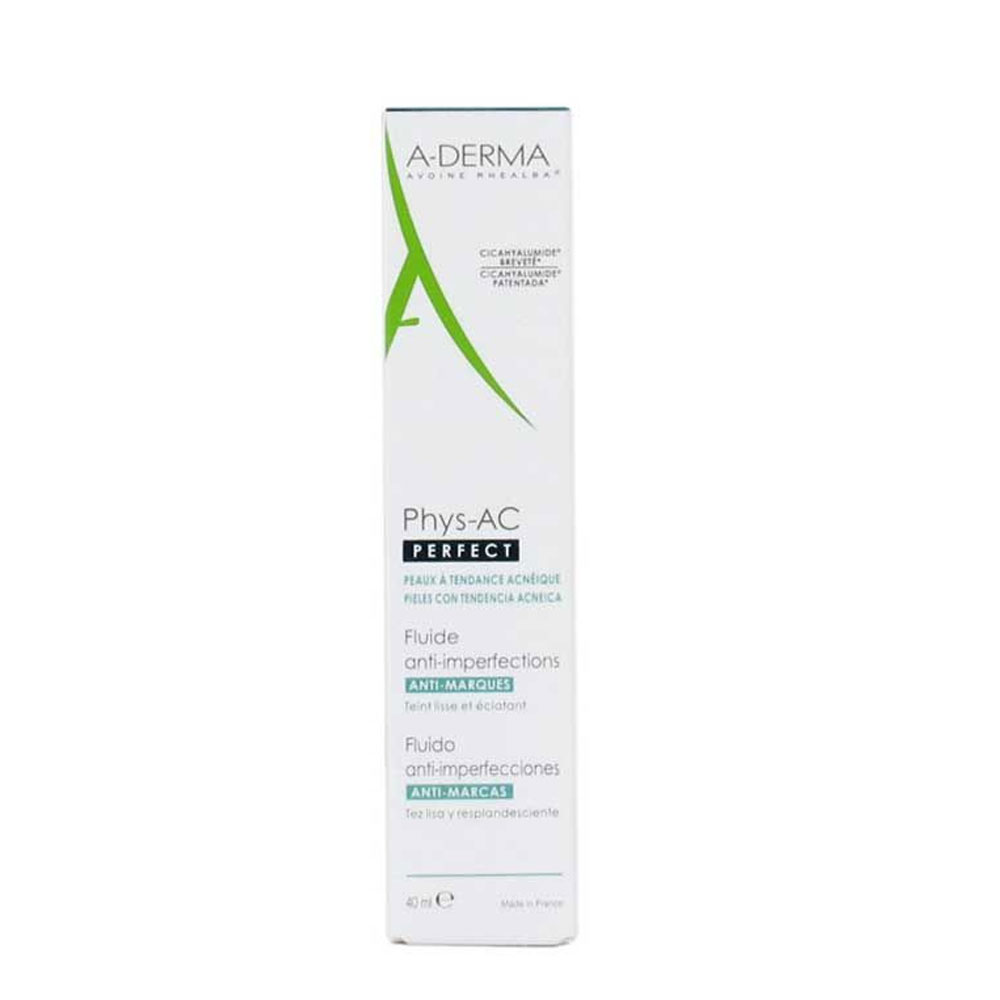 Η A-Derma Phys-AC Perfect Fluide κατά των ατελειών και κατά των σημαδιών, προσφέρει φροντίδα στο δέρμα για τις γυναίκες που εμφανίζουν ατέλειες ακνεϊκού τύπου. Αποσυμφορεί τους φραγμένους πόρους και μειώνει τις υπολειμματικές βλάβες, χάρη στο κατοχυρωμένο Cicahyalumide®. Προσφέρει ματ όψη, ενυδατώνει το δέρμα και επαναφέρει την ισορροπία.