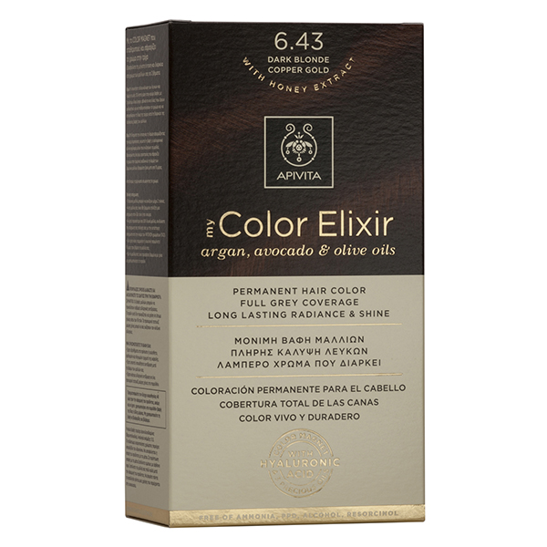 APIVITA MY COLOR ELIXIR N6,43 Ξανθό σκούρο χάλκινο μελί Βαφή Μαλλιών 1τμχ