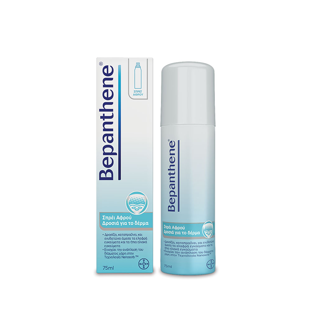 To Σπρέι Αφρού Bepanthol αντιμετωπίζει και δροσίζει τα ελαφρά εγκαύματα (π.χ. εγκαύματα από ζεστό νερό, ατμό ή θερμές επιφάνειες) και τα ήπια εγκαύματα λόγω της έκθεσης στον ήλιο, ενώ παράλληλα δροσίζει και ενυδατώνει το ερεθισμένο δέρμα. Περιέχει φυσιολογικά λιπίδια του δέρματος και πανθενόλη και βασίζεται στην πρωτοποριακή τεχνολογία Nanosorb, μέσω της οποίας τα θρεπτικά συστατικά του παρέχονται με τη μορφή μικροσκοπικών σταγονιδίων (νανομόρια), ενισχύοντας έτσι την άμεση απορρόφηση των ενυδατικών συστατικών από το δέρμα σας και τη μείωση της δυσάρεστης αίσθησης του «τραβήγματος». Έχει ανώδυνη εφαρμογή καθώς, αφού ψεκάσετε την πάσχουσα περιοχή, ο αφρός απορροφάται γρήγορα χωρίς να χρειάζεται επάλειψη.