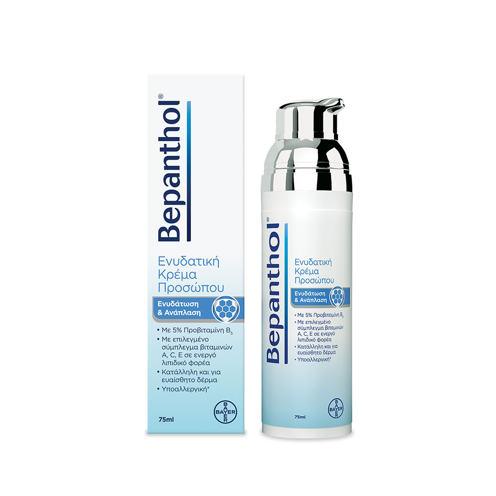 Η Bepanthol® Κρέμα Προσώπου είναι ο σύμμαχός σας στην καθημερινή ενυδάτωση και προστασία του δέρματος του προσώπου. Χάρη στην ειδική συνθέση με επιλεγμένο σύμπλεγμα βιταμινών Α, C ,Ε και των λιποσωμάτων που τις διοχετεύουν στο δέρμα, δρα αντιοξειδωτικά και ενισχύει την παραγωγή κολλαγόνου, προσφέροντας έτσι προστασία ενάντια στην πρόωρη γήρανση, ενώ παράλληλα βελτιώνει την υφή του δέρματος, κάνοντάς το πιο λείο και πιο απαλό.