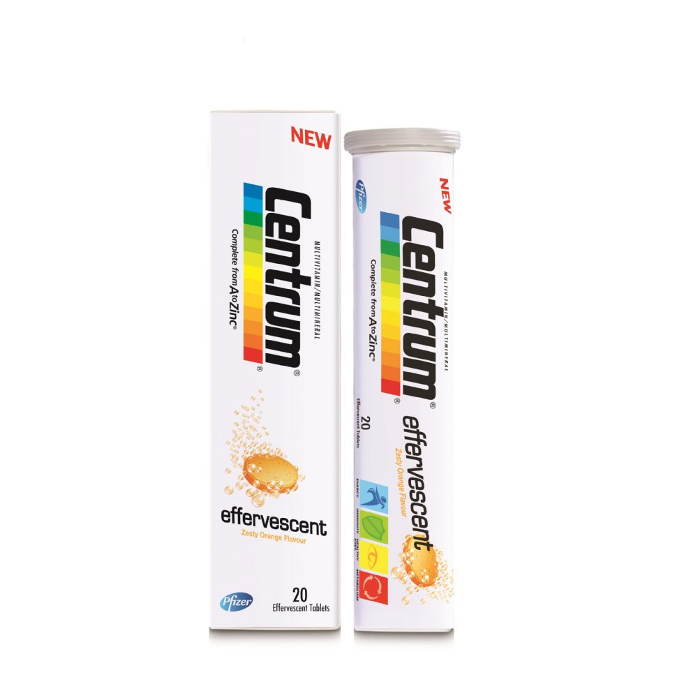 Ο οργανισμός μας χρειάζεται να προσλαμβάνει καθημερινά συγκεκριμένες ποσότητες βασικών βιταμινών, μετάλλων και ιχνοστοιχείων. Με λίγες εξαιρέσεις, αυτά τα θρεπτικά συστατικά δεν μπορούν να συντεθούν από τον ανθρώπινο οργανισμό ή παράγονται ανεπαρκώς. Για αυτό το λόγο, έχει αναπτυχθεί από τους ειδικούς μας το Centrum A to Zinc Effervescent, ένα συμπλήρωμα διατροφής σε αναβράζοντα δισκία και με γεύση πορτοκάλι, που βοηθά στην κάλυψη των καθημερινών αναγκών σε βιταμίνες και μεταλλικά στοιχεία.