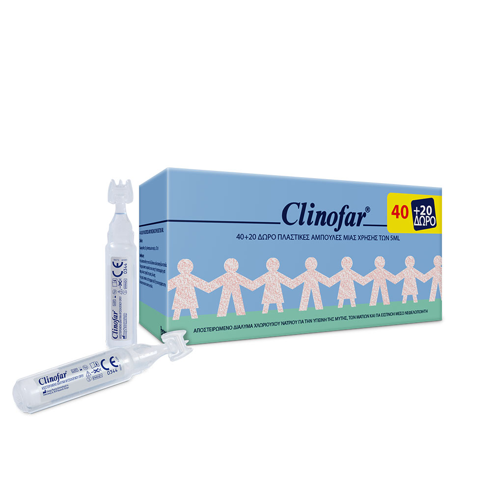 Clinofar αμπούλες φυσιολογικού ορού για ρινική αποσυμφόρηση 5mlx40+20 δώρο