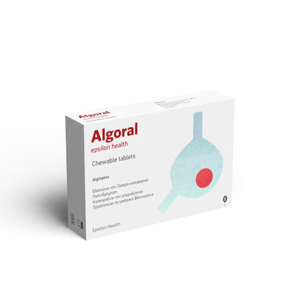 To Epsilon Health Algoral είναι ένα σκεύασμα σε μορφή μασώμενων δισκίων που προσφέρει άμεση ανακούφιση από την καούρα και τα δυσάρεστα συμπτώματα της γαστροοισοφαγικής παλινδρόμησης (ΓΟΠ).