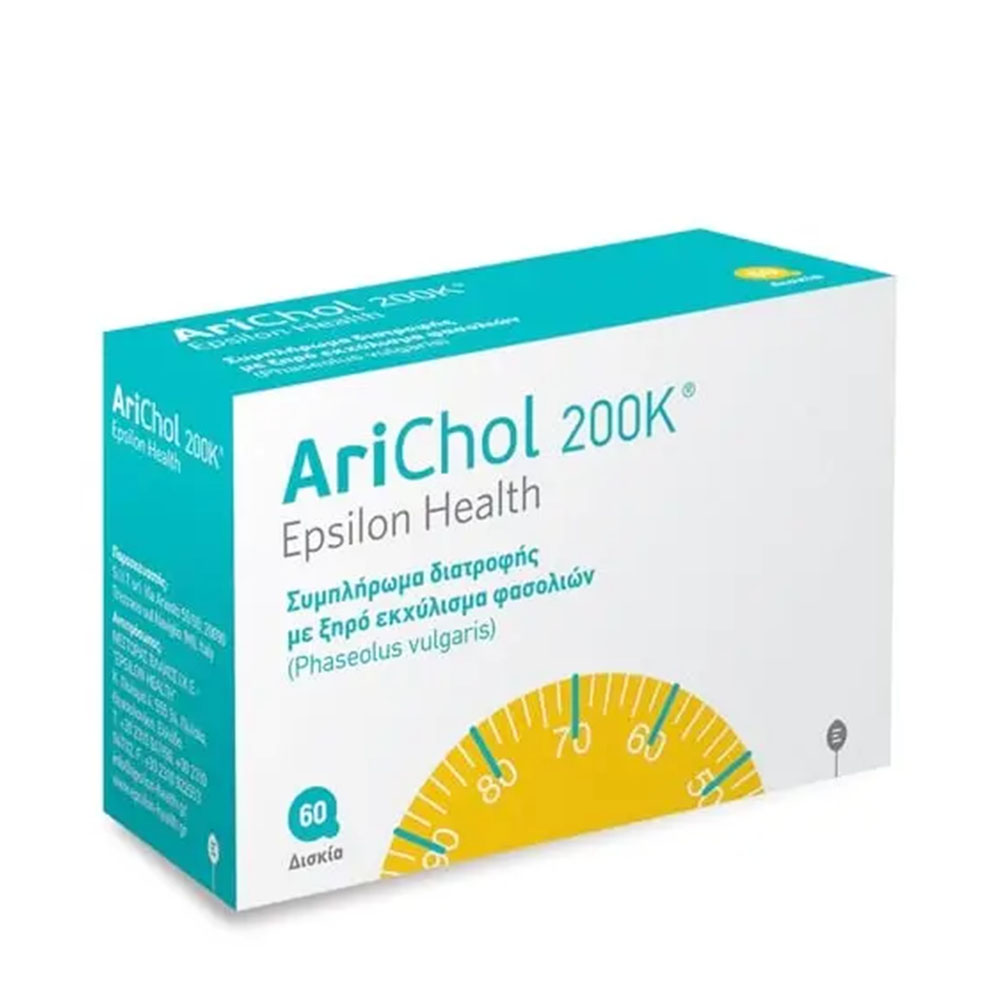 Το Epsilon Health Arichol 200K είναι ένα ένα ιατροτεχνολογικό βοήθημα για αδυνάτισμα και για τον έλεγχο του βάρους που περιέχει το γλυκοπρωτεϊνικό σύμπλεγμα Captocarb από φασόλια σε συνδυασμό με σιμενθικόνη.