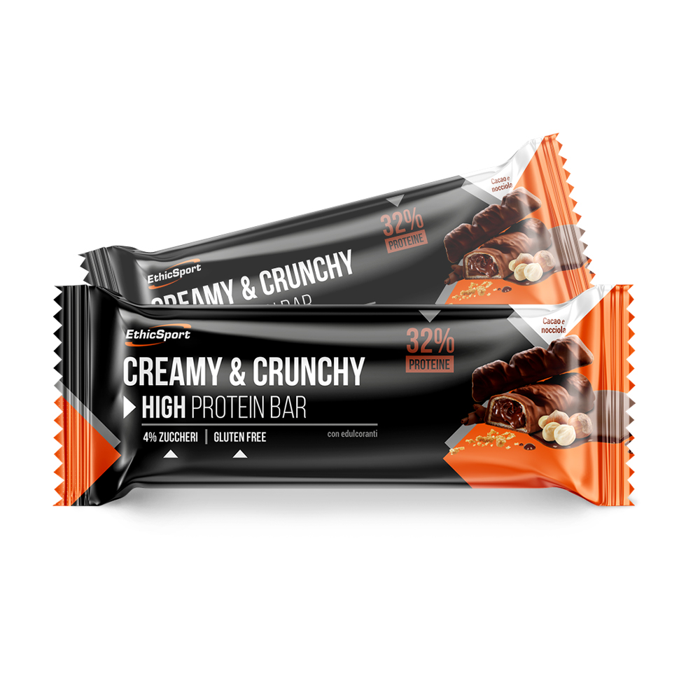 Η CREAMY & CRUNCHY – Dark Chocolat and Coconut είναι μια μπάρα πρωτεΐνης φτιαγμένη με μια τραγανή γκοφρέτα γεμάτη με κρέμα πρωτεΐνης καρύδας και καλυμμένη με μαύρη σοκολάτα. Έχει υψηλή περιεκτικότητα σε πρωτεΐνες, ενώ είναι εύπεπτη και με πολύ ευχάριστη γεύση, χάρη στα κορυφαίας ποιότητας συστατικά.