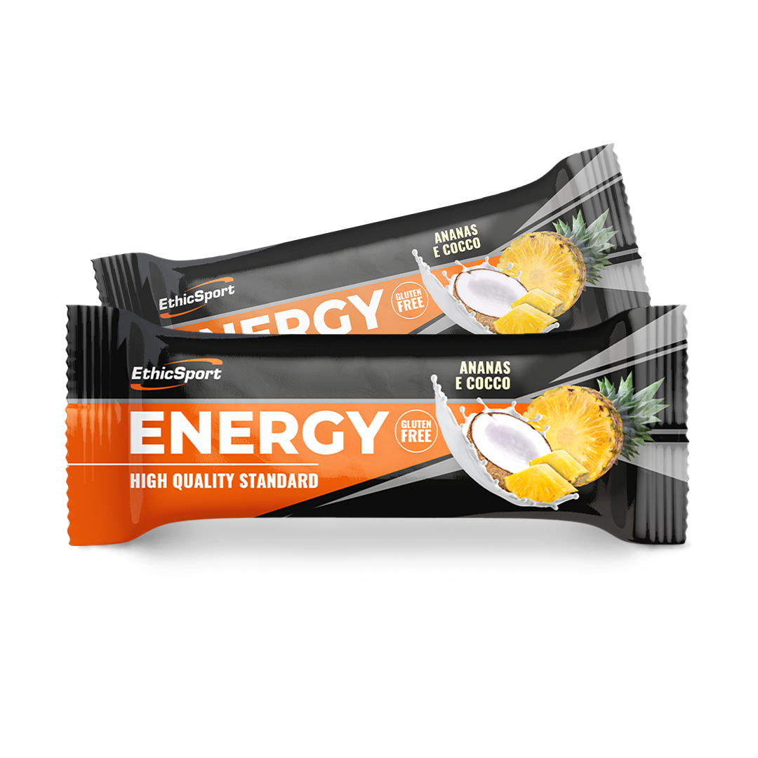 Οι μπάρες της σειράς ENERGY είναι ειδικά μελετημένες για όσους αθλούνται. Το νέο ENERGY ανανάς-καρύδα, είναι ένα σνακ με υδατάνθρακες διαδοχικής απορρόφησης, χάρη στην παρουσία της πάστας αμυγδάλου. Περιέχει επίσης τραγανό ρύζι, νιφάδες βρώμης και αποξηραμένα φρούτα, όλα χωρίς γλουτένη, με επικάλυψη βρώσιμου ρυζόχαρτου. Η συγκεκριμένη σύνθεση παρέχει γρήγορα ενέργεια και το ειδικό μείγμα βοηθά στην σταδιακή αποδέσμευση. Αυτή η μπάρα είναι κατάλληλη για αθλήματα αντοχής και ανταποκρίνεται τέλεια στις ανάγκες όλων των αθλημάτων. Παρασκευάζεται χωρίς πρόσθετα συντηρητικά και τεχνητές χρωστικές ουσίες. Είναι εξαιρετικά εύπεπτη και εύκολα μασώμενη. Έχει μια φρουτώδη και ισορροπημένη γεύση και διατηρεί την απόδοσή του ακόμη και σε ακραίες συνθήκες.