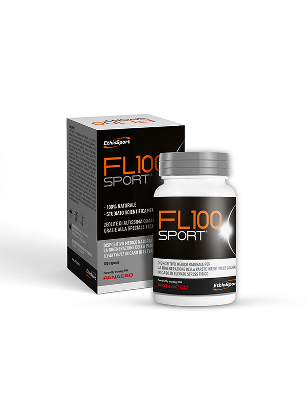 Το FL100 SPORT® προλαμβάνει τη γαλακτική οξέωση και ελαχιστοποιεί την οξειδωτική πίεση. Περιέχει ενεργό ζεόλιθο, ένα ορυκτό ηφαιστειακής προέλευσης που δημιουργείται από την ένωση της λάβας με το θαλασσινό νερό. Ο ζεόλιθος έχει την ικανότητα να δεσμεύει τις τοξίνες, τα βαρέα μέταλλα, τα ιόντα αμμωνίου και τις ελεύθερες ρίζες στο γαστρεντερικό σωλήνα και να τις μεταφέρει, να τις απελευθερώσει ή να τις ανταλλάξει. Μπορεί επίσης να απελευθερώσει σημαντικά μέταλλα, όπως το μαγνήσιο, το ασβέστιο, το νάτριο και το κάλιο στο σώμα. Μέσα από μια διαδικασία πολύπλοκης και προηγμένης ενεργοποίησης, που αυξάνει την επιφάνεια επαφής, η περιεκτικότητα του ζεόλιθου στο FL100 SPORT® είναι πολύ δραστική.