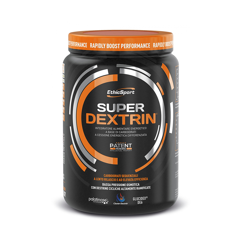 Το Super Dextrin είναι ένα ενεργειακό συμπλήρωμα διατροφής νέας γενιάς. Η ειδική σύνθεσή του εκμεταλλεύεται τη συνέργεια του Cluster Dextrin® (HBCD = πολυδιακλαδισμένες κυκλικές δεξτρίνες), του Palatinose™ (Ισομαλτουλόζη) και των μαλτοδεξτρινών με διαφορετικό ισοδύναμο δεξτρόζης (DE6 και DE18). Επίσης, η συνεργική παρουσία των HBCD σε συνδυασμό με τις DE6 επιτρέπει τη χαμηλή ωσμωτική πίεση του μείγματος, με αποτέλεσμα την ταχεία και αποτελεσματική γαστρική κένωση. Η διαφορετική μοριακή δομή των υδατανθράκων ευνοεί τη διαφοροποιημένη απελευθέρωση της ενέργειας, επιτρέποντας την καλύτερη κατανομή των ενεργειακών αποθεμάτων. Έχει σύνθεση κατοχυρωμένη με δίπλωμα ευρεσιτεχνίας (Patent Pending), χάρη στα ιδιαίτερα καινοτόμα χαρακτηριστικά του. Το Super Dextrin δεν περιέχει καφεΐνη και γλουτένη και είναι πιστοποιημένο για έλεγχο ντόπινγκ*.