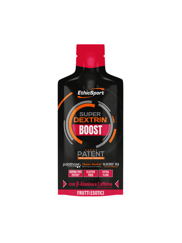 Βασισμένο στην επιτυχημένη φόρμουλα του Super Dextrin δημιουργήθηκε η σειρά BOOST, μια νέα φόρμουλα, ειδική για την άμεση και γρήγορη ενεργειακή υποστήριξη των αθλητών ακόμα και σε πολύ έντονες συνθήκες εργασίας. Το SUPER DEXTRIN BOOST είναι ένα ενεργειακό συμπλήρωμα διατροφής νέας γενιάς, το οποίο παρέχει κυκλοδεξτρίνες (Cluster Dextrin®), Palatinose® και δύο μαλτοδεξτρίνες με διαφορετική ισοδυναμία δεξτρόζης. Η σειρά BOOST εξελίσσεται από τη σύνθεση Super Dextrin Gel, που έχει ήδη δοκιμαστεί και εκτιμηθεί ευρέως, με την προσθήκη β-αλανίνης και καφεΐνης. Έτσι, το προϊόν ευνοεί τη διαφοροποιημένη απελευθέρωση της ενέργειας, επιτρέποντας την καλύτερη κατανομή των ενεργειακών αποθεμάτων. Το προϊόν βρίσκει καλύτερη εφαρμογή όταν το σώμα χρειάζεται ένα γρήγορο και ισχυρό ερέθισμα.