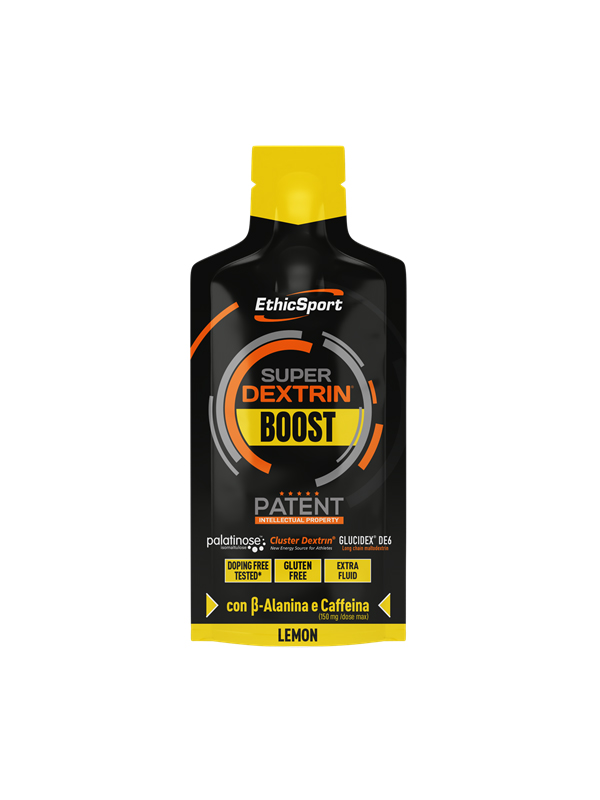 Βασισμένο στην επιτυχημένη φόρμουλα του Super Dextrin δημιουργήθηκε η σειρά BOOST, μια νέα φόρμουλα, ειδική για την άμεση και γρήγορη ενεργειακή υποστήριξη των αθλητών ακόμα και σε πολύ έντονες συνθήκες εργασίας. Το SUPER DEXTRIN BOOST είναι ένα ενεργειακό συμπλήρωμα διατροφής νέας γενιάς, το οποίο παρέχει κυκλοδεξτρίνες (Cluster Dextrin®), Palatinose® και δύο μαλτοδεξτρίνες με διαφορετική ισοδυναμία δεξτρόζης. Η σειρά BOOST εξελίσσεται από τη σύνθεση Super Dextrin Gel, που έχει ήδη δοκιμαστεί και εκτιμηθεί ευρέως, με την προσθήκη β-αλανίνης και καφεΐνης. Έτσι, το προϊόν ευνοεί τη διαφοροποιημένη απελευθέρωση της ενέργειας, επιτρέποντας την καλύτερη κατανομή των ενεργειακών αποθεμάτων. Το προϊόν βρίσκει καλύτερη εφαρμογή όταν το σώμα χρειάζεται ένα γρήγορο και ισχυρό ερέθισμα.