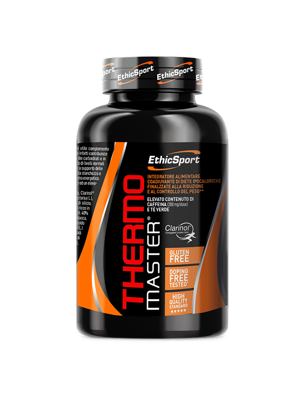 Το ThermoMaster® είναι ένα προϊόν που δημιουργήθηκε για να βοηθήσει τον έλεγχο ή τη μείωση του βάρους, πάντα σε συνδυασμό με ισορροπημένη διατροφή, υγιεινό τρόπο ζωής και ικανοποιητικό επίπεδο σωματικής δραστηριότητας. Ο ενεργειακός μεταβολισμός ενισχύεται χάρη στην ταυτόχρονη παρουσία διαφορετικών δραστικών συστατικών. Συγκεκριμένα το ThermoMaster® εμπεριέχει σημαντικές ποσότητες καφεΐνης και πράσινου τσαγιού που συμβάλλουν στην εξισορρόπηση του σωματικού βάρους. Το τζίνσενγκ (ginseng) τονώνει τον οργανισμό επιδρώντας και στον μεταβολισμό των υδατανθράκων. Το πικολινικό χρώμιο συμβάλλει στο σωστό μεταβολισμό των μακροθρεπτικών συστατικών και των φυσιολογικών επιπέδων της γλυκόζης στο αίμα. Οι βιταμίνες B1, B2, B6 συμβάλλουν σε ένα φυσιολογικό ενεργειακό μεταβολισμό. Η Κλαρινόλη (Clarinol®) (CLA = Συζευγμένο λινελαϊκό οξύ), η Ακετυλο-καρνιτίνη, η Βρωμελίνη και η Βιοπερίνη (Bioperine®) συμπληρώνουν τη σύνθεση του προϊόντος, το οποίο δημιουργήθηκε κατόπιν έρευνας της EthicSport. Το προϊόν δεν περιέχει γλουτένη (Gluten Free)και ως εκ τούτου, είναι κατάλληλο για άτομα με κοιλιοκάκη ή δυσανεξία στη γλουτένη.