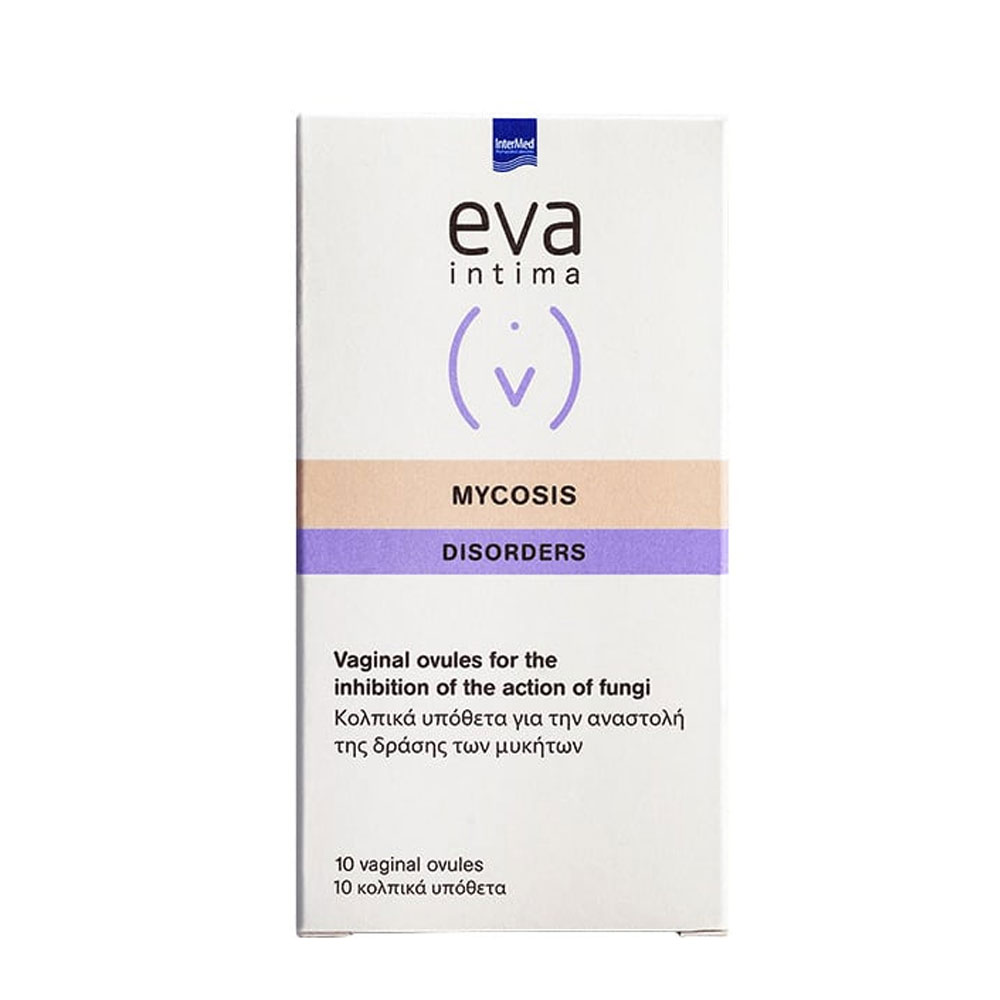 Το Eva Intima Mycosis Ovules είναι ένα ιατροτεχνολογικό προϊόν ειδικά σχεδιασμένο για τον έλεγχο των μυκητιασικών λοιμώξεων οποιασδήποτε αιτιολογίας. Χάρη στον συνδυασμό του βορικού οξέος, του tea tree oil και του γαλακτικού οξέος, το Eva mycosis ovules αναστέλλει τη δράση των μυκήτων μέσα σε 48 ώρες και σε ποσοστό πάνω από 90% ενώ παράλληλα εξισορροπεί το κολπικό περιβάλλον. Η εμπλουτισμένη σύνθεσή του σε εκχύλισμα χαμομηλιού και πανθενόλη ανακουφίζει από το αίσθημα καύσου και ερεθισμού και περιποιείται τον ταλαιπωρημένο κολπικό βλεννογόνο.