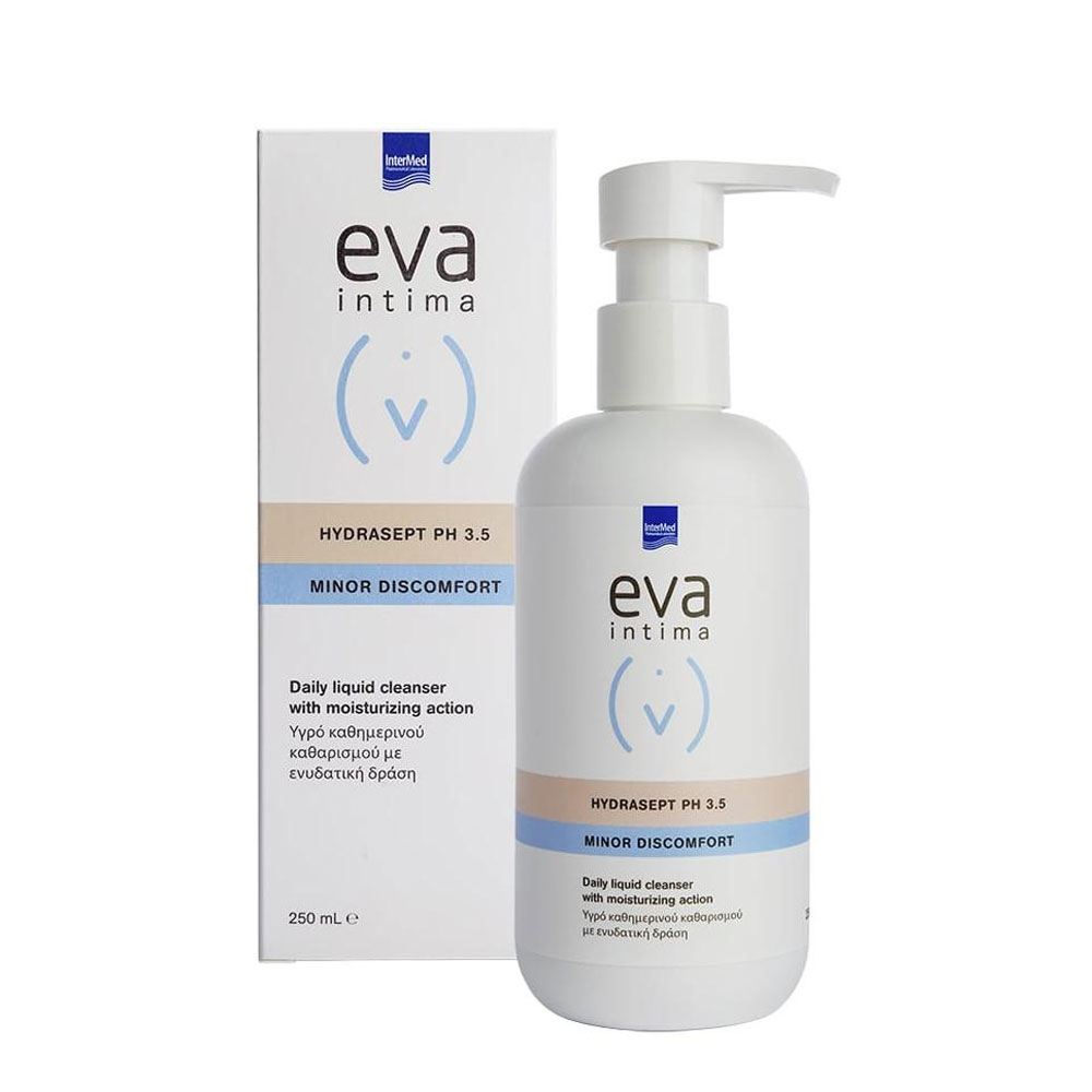 Το Eva Intima Hydrasept είναι ειδικά σχεδιασμένο απαλό υγρό καθημερινού καθαρισμού χωρίς σαπούνι, συμβατό με τη φυσιολογία της ευαίσθητης περιοχής γυναικών ιδιαίτερα ευπαθών ομάδων όπως εκείνες με ξηρότητα. Το Eva Intima Hydrasept καθαρίζει απαλά χωρίς να ξηραίνει ή να ερεθίζει το δέρμα, ενώ παράλληλα προσφέρει υψηλή αντιμικροβιακή προστασία με φυσικό τρόπο αφήνοντας άμεσα αίσθηση φρεσκάδας και καθαριότητας. Η χρήση του Eva Intima Wash Hydrasept παράλληλα με αγωγή για την αντιμετώπιση συμπτωμάτων της αιδοιοκολπικής ξηρότητας συντελεί στην επιτυχή ανακούφιση αυτής.