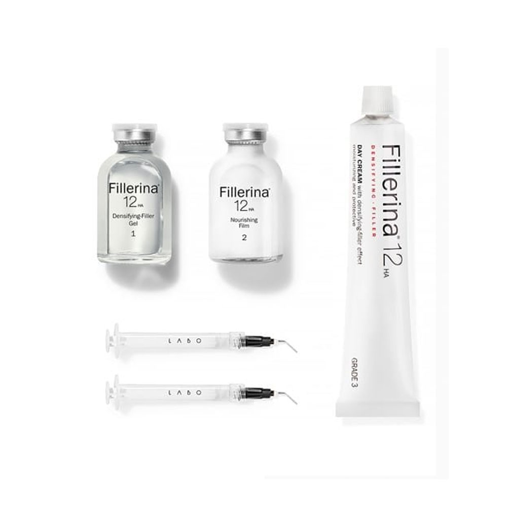Η δερμο-καλλυντική αγωγή Fillerina 12HA Αναπλήρωσης όγκου και Γεμίσματος διατίθεται σε 3 διαφορετικούς βαθμούς με αυξανόμενες συγκεντρώσεις στα ενεργά συστατικά, ώστε να επιλεγεί ο κατάλληλος ανάλογα με τις ανάγκες της επιδερμίδας: