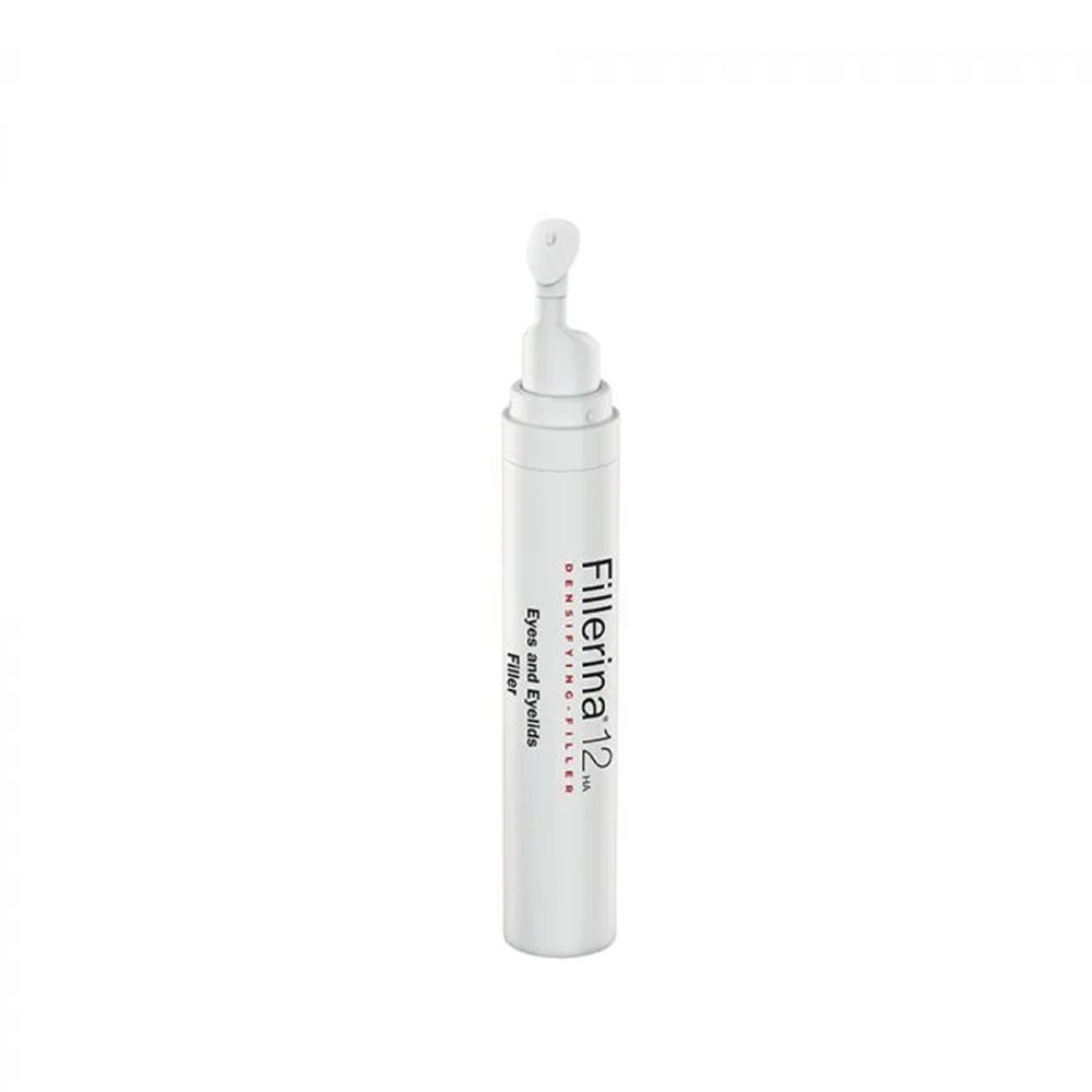 Η σύνθεση Fillerina 12HA Αναπλήρωσης του δέρματος και Γεμίσματος των ρυτίδων για τα Mάτια και τα Bλέφαρα περιέχει σε υψηλή συγκέντρωση ένα κατοχυρωμένο με δίπλωμα ευρεσιτεχνίας σύμπλεγμα 12 μορίων Υαλουρονικού Οξέος με διαφορετικά μοριακά βάρη, τα οποία εισχωρούν ιδιαίτερα αποτελεσματικά στις διάφορες στοιβάδες του δέρματος (ex vivo έλεγχος με Franz Cells), επιτυγχάνοντας το γέμισμα και την αναπλήρωση του όγκου των δερματικών ιστών. Επιπλέον ο συστατικό Acetyl Hexapeptide-30 ενισχύει την αντιρυτιδική δράση στην περιοχή γύρω από τα μάτια και στα βλέφαρα, βοηθώντας στη μείωση των μικρο-συσπάσεων του δέρματος, μειώνοντας άμεσα και τις γραμμές έκφρασης.