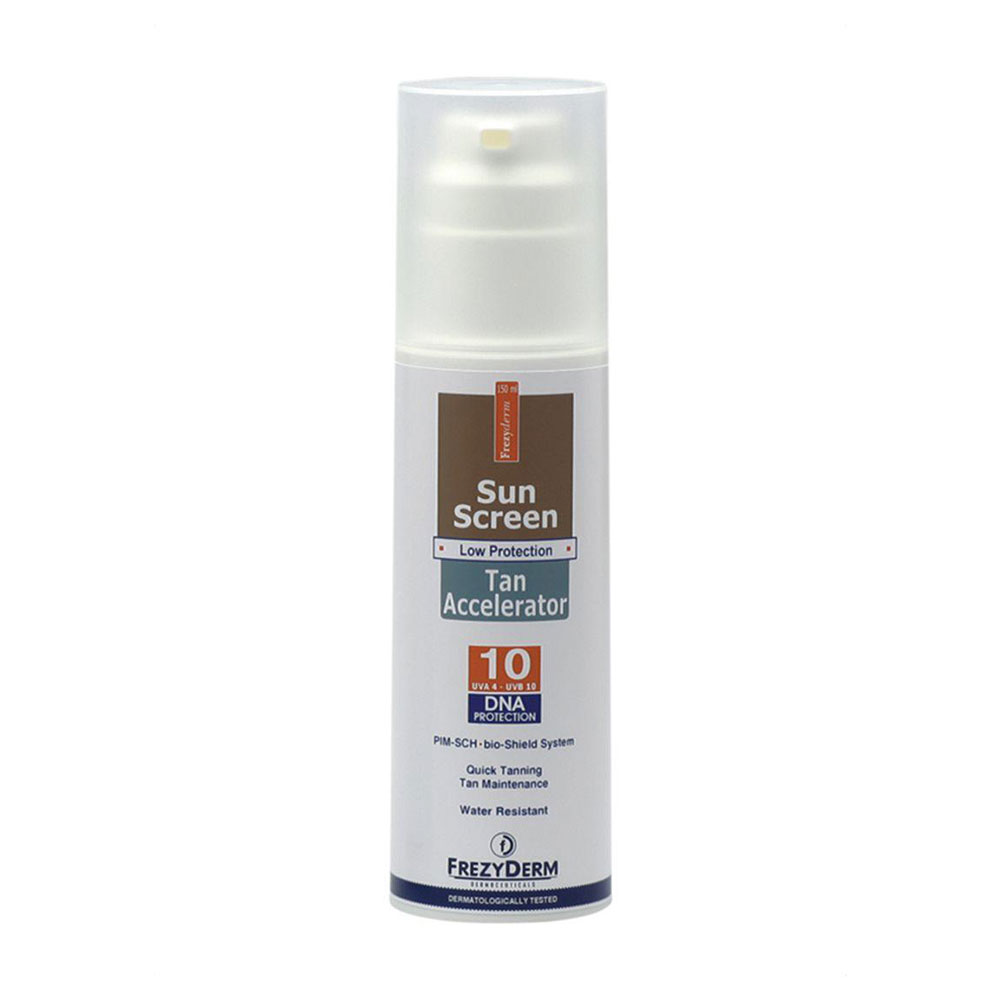 Αντηλιακό γαλάκτωμα προσώπου και σώματος, με επιταχυντές μαυρίσματος. Η σύνθεσή του ενεργοποιεί την ταχύτερη παραγωγή μελανίνης, για γρήγορο, βαθύ, ομοιόμορφο μαύρισμα διάρκειας με φυσικό τρόπο. Παράλληλα, ενυδατώνει την επιδερμίδα και προστατεύει από το ξεφλούδισμα.