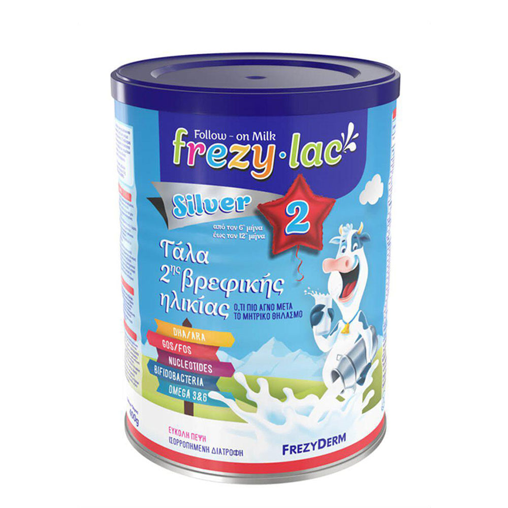 Το FREZYLAC SILVER 2 είναι αγελαδινό γάλα σε σκόνη, κατάλληλο για τη διατροφή του βρέφους από τον 6° μήνα έως τον 12° μήνα στο πλαίσιο μίας μεικτής διατροφής.