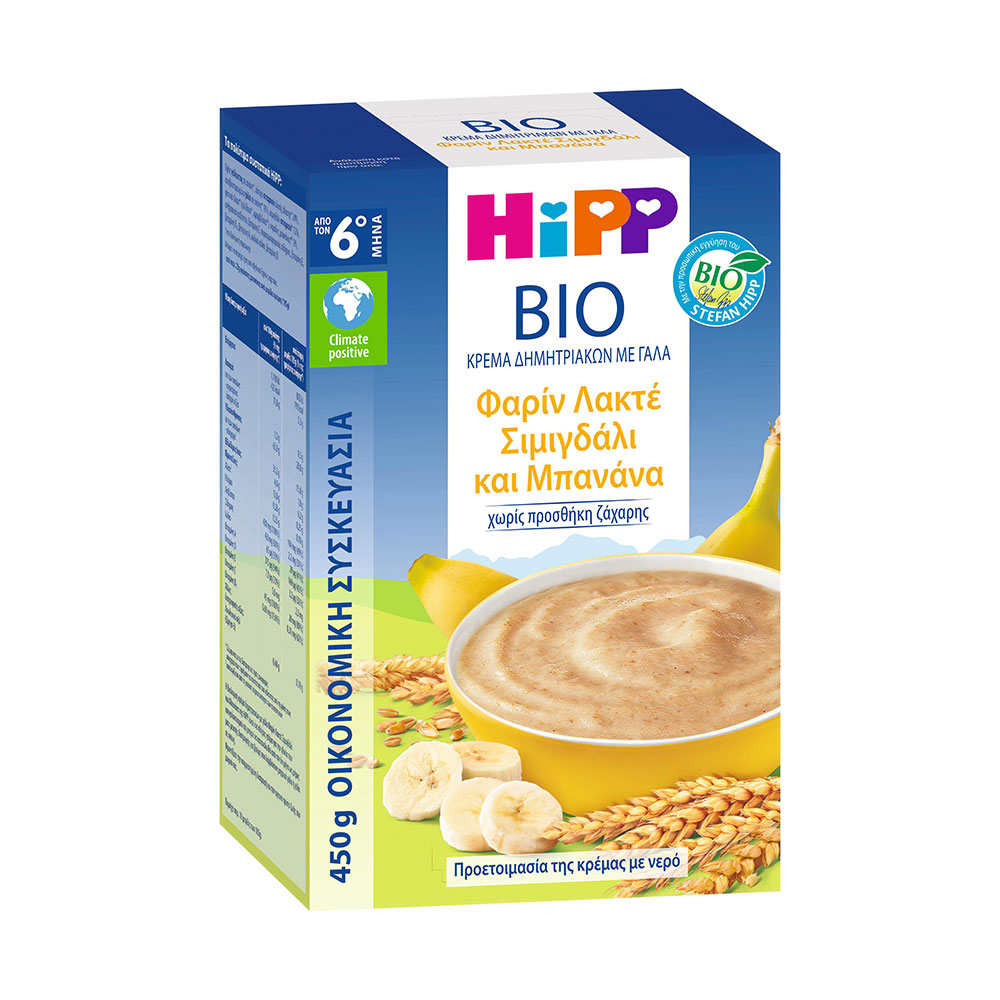 HiPP ΚΡΕΜΑ ΜΕ ΓΑΛΑ ΦΑΡΙΝ ΛΑΚΤΕ ΣΙΜΙΓΔΑΛΙ & ΜΠΑΝΑΝΑ ΑΠΟ ΤΟΝ 6ο ΜΗΝΑ 450gr