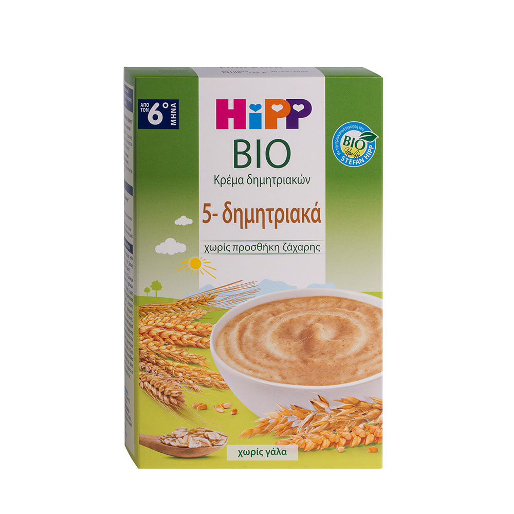 Βράζετε 100ml καθαρό πόσιμο νερό και το αφήνετε να κρυώσει μέχρι να φτάσει περίπου τους 50C. Βάζετε 2 κουταλιές της σούπας (11g) κρέμας HiPP σε ένα πιάτο. Προσθέτετε το νερό που έχει κρυώσει και ανακατεύετε. Προσθέστε την επιθυμητή μερική ποσότητα (περίπου 100g) φρούτων HiPP (π.χ. αχλάδι Williams Christ) ή κατά προτίμηση λαχανικά HiPP και 1 κ.γ. ελαιόλαδο και ανακατεύετε. Αφήστε τη κρέμα μέχρι να αποκτήσει την επιθυμητή ρευστότητα. Ελέγχετε πάντα τη θερμοκρασία.