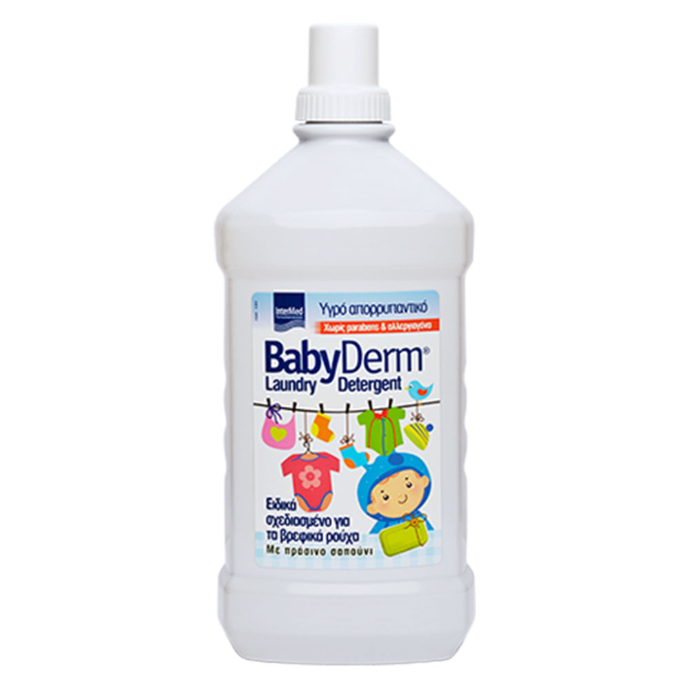 To Βabyderm Laundry είναι απαλό υγρό απορρυπαντικό, ειδικά σχεδιασμένο για τα βρεφικά ρούχα. Χάρη στο πράσινο σαπούνι απομακρύνει αποτελεσματικά τους πιο δύσκολους λεκέδες από τα ρούχα του μωρού, αφήνοντας τα καθαρά και απαλά. Κατάλληλα μελετημένη σύνθεση με υποαλλεργικό άρωμα, όπου διαλύεται εύκολα χωρίς να αφήνει υπολείμματα στα ρούχα.