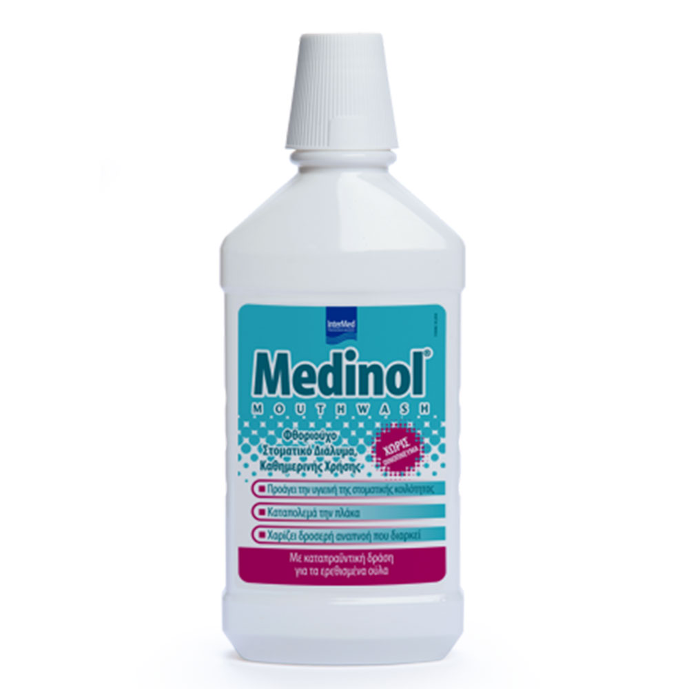 Το Medinol Mouthwash είναι καθημερινό, φθοριούχο στοματικό διάλυμα για την αποτελεσματική και ολοκληρωμένη προστασία που έχει ανάγκη η στοματική κοιλότητα καθημερινά και ιδιαίτερα για τη μείωση της υπερευαισθησίας των δοντιών με συστηματική χρήση και τη συντήρηση του αποτελέσματος της εντατικής αντιμετώπισης της αυχενικής υπερευαισθησίας.