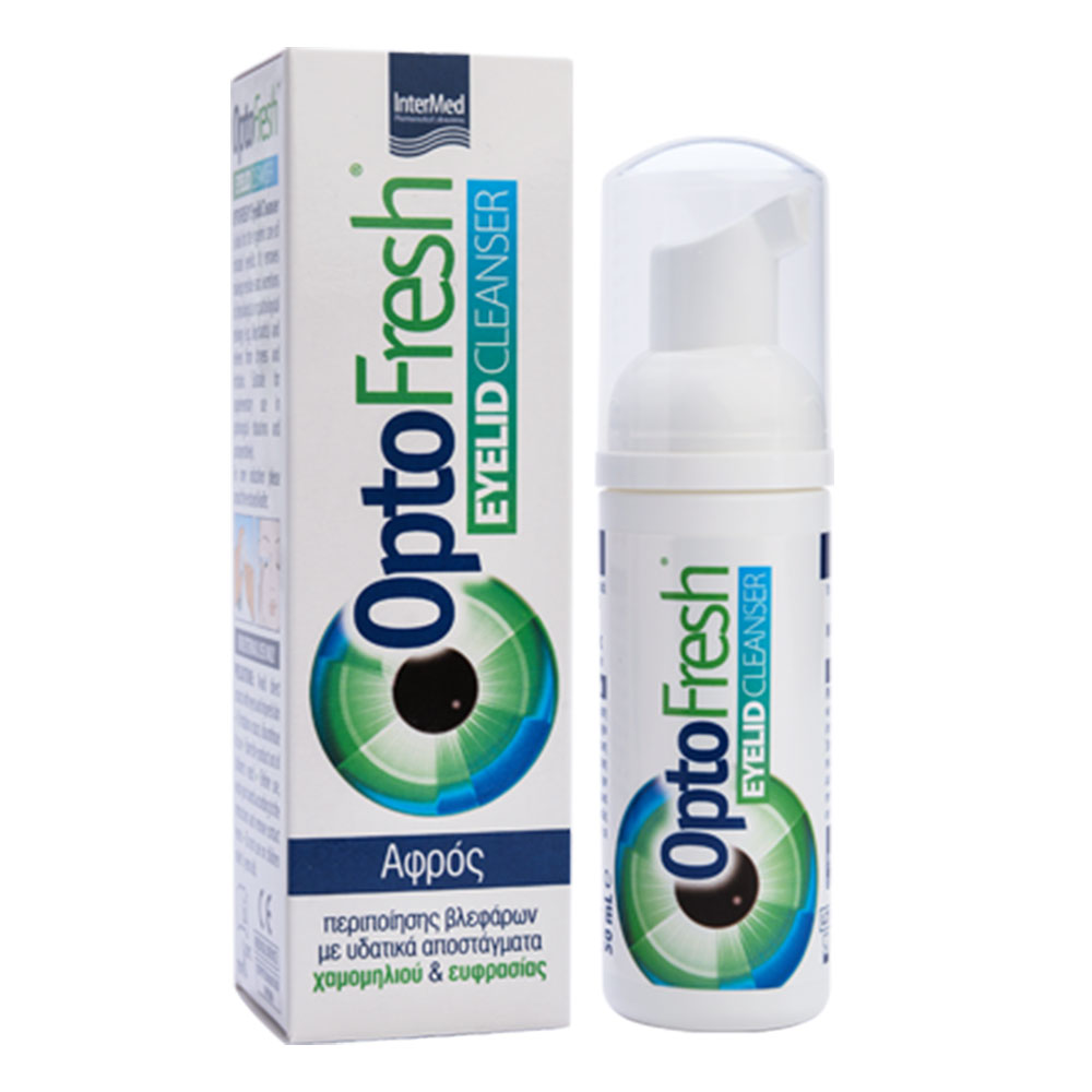 Το OptoFresh EYELID CLEANSER, χάρη στα υδατικά αποστάγματα χαμομηλιού και ευφρασίας που περιέχει, είναι ο ιδανικός αφρός καθαρισμού και περιποίησης των ερεθισμένων βλεφάρων. Τα βλέφαρα, λόγω της πολύ λεπτής επιδερμίδας τους, είναι ευάλωτα σε πολλούς ερεθιστικούς παράγοντες, με αποτέλεσμα την εμφάνιση ξηρότητας και ερεθισμών. Τόσο οι εκκρίσεις των οφθαλμών –είτε φυσιολογικές, είτε παθολογικής αιτιολογίας – όσο και η έκθεση των βλεφάρων στην πληθώρα των εξωγενών, ερεθιστικών παραγόντων (σκόνη, καπνός, καυσαέρια, ξηρός αέρας, μακιγιάζ) ερεθίζουν τα βλέφαρα και τα καθιστούν επιρρεπή στην εμφάνιση βλεφαρίτιδας και άλλων δερματικών παθήσεων.