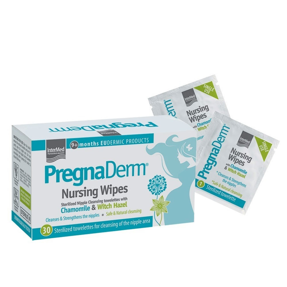 Τα Pregnaderm nursing wipes προσφέρουν απαλό καθαρισμό των θηλών πριν και μετά τη διαδικασία του θηλασμού. Χάρη στην ειδικά διαμορφωμένη σύνθεσή τους , απαλλαγμένη από συντηρητικά και αρώματα, σε αποστειρωμένη συσκευασία μίας χρήσης επιτυγχάνουν τη μέγιστη ασφάλεια για το βρέφος ενώ παράλληλα ανακουφίζουν από τυχόν μικροερεθισμούς και μικροαμυχές.