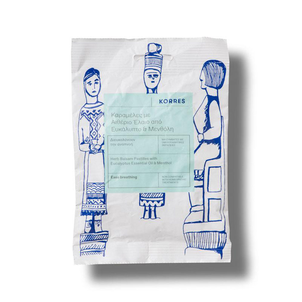 KORRES Καραμέλες με Αιθέριο Έλαιο από Ευκάλυπτο & Μενθόλη, Καραμέλες με βότανα της Ελληνικής φύσης που ανακουφίζουν άμεσα τον ερεθισένο λαιμό. Ο Ευκάλυπτος και η Μενθόλη διευκολύνουν την αναπνοή, το Θυμάρι μαλακώνει το βήχα, ενώ το Μάραθο δροσίζει την αναπνοή.