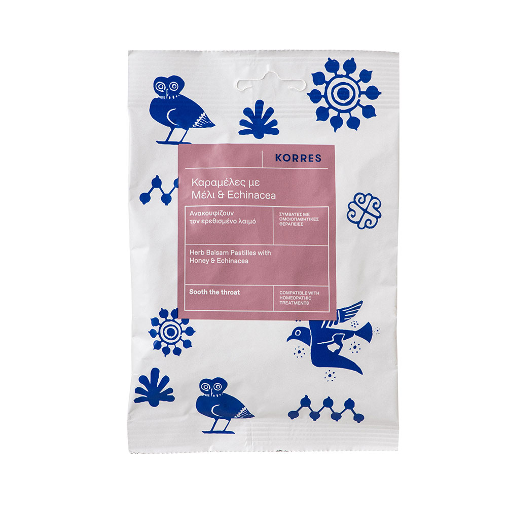 Καραμέλες Korres με Μέλι & Echinacea που ανακουφίζουν τον ερεθισμένο λαιμό, μαλακώνουν το βήχα.