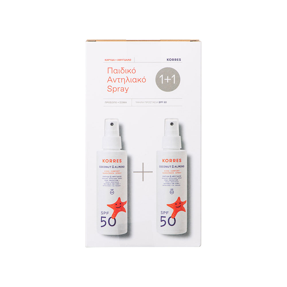 KORRES Promo Kids Sunscreen Spray ΚΑΡΥΔΑ – ΑΜΥΓΔΑΛΟ Αντηλιακό Spray Πρόσωπο + Σώμα SPF50 2x150ml