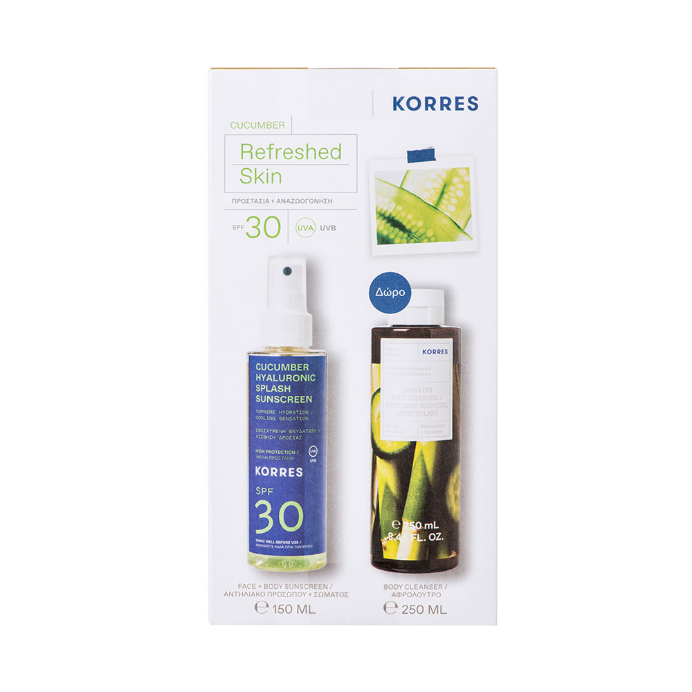KORRES Promo Pack Cucumber & Hyaluronic Splash Sunscreen Αντηλιακό για Πρόσωπο & Σώμα SPF30 150ml & Αφρόλουτρο Αγγούρι Bamboo 250ml