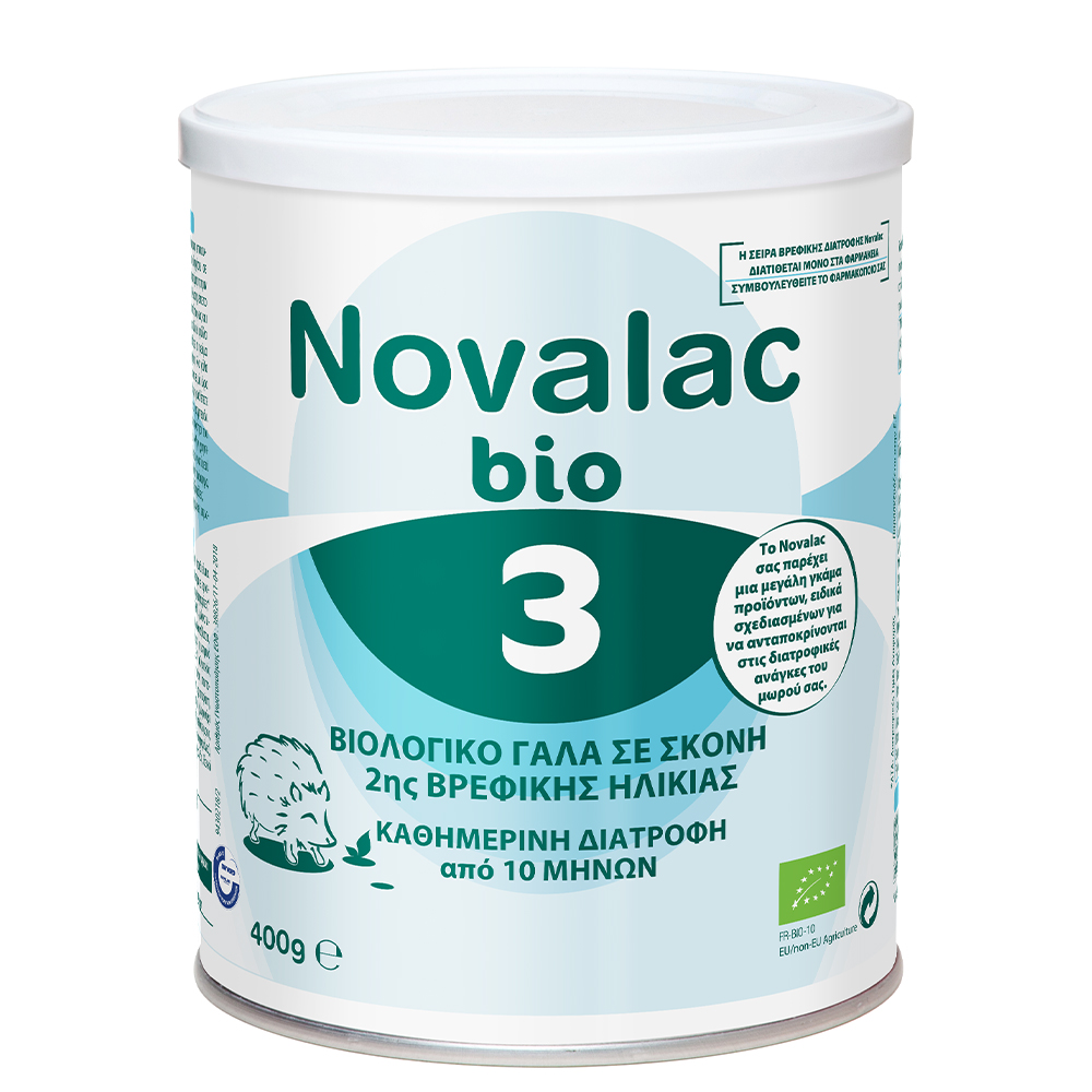 Το Novalac Bio 3 είναι ένα βιολογικό γάλα αγελάδος σε μορφή σκόνης, κατάλληλο για την 3η βρεφική ηλικία. Διαθέτει σύνθεση χωρίς γενετικά τροποποιημένους οργανισμούς και χωρίς φυτοφάρμακα.