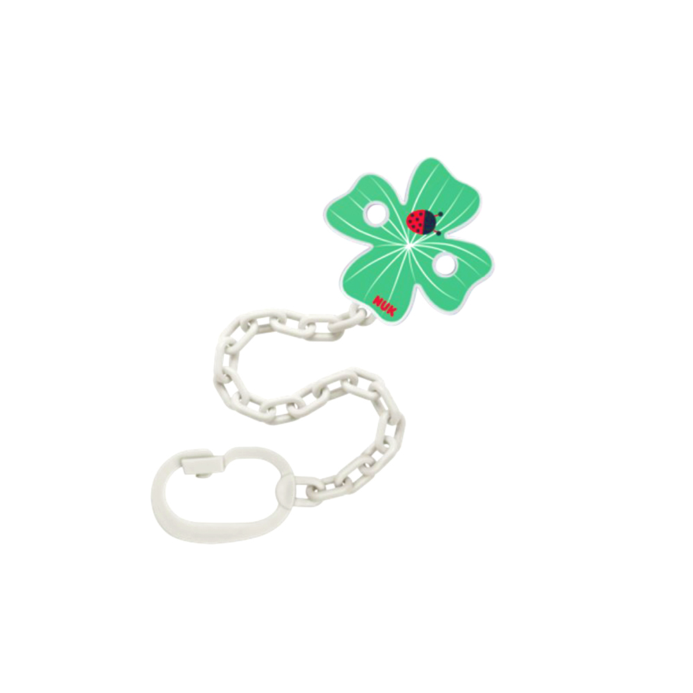 Η αλυσίδα πιπίλας NUK διαθέτει πρακτικό σύστημα κλιπ, με το οποίο κρεμιέται πολύ εύκολα στα ρούχα του μωρού σας. Το σύστημα άγκιστρου διευκολύνει επιπλέον τη στερέωση της πιπίλας στην αλυσίδα.