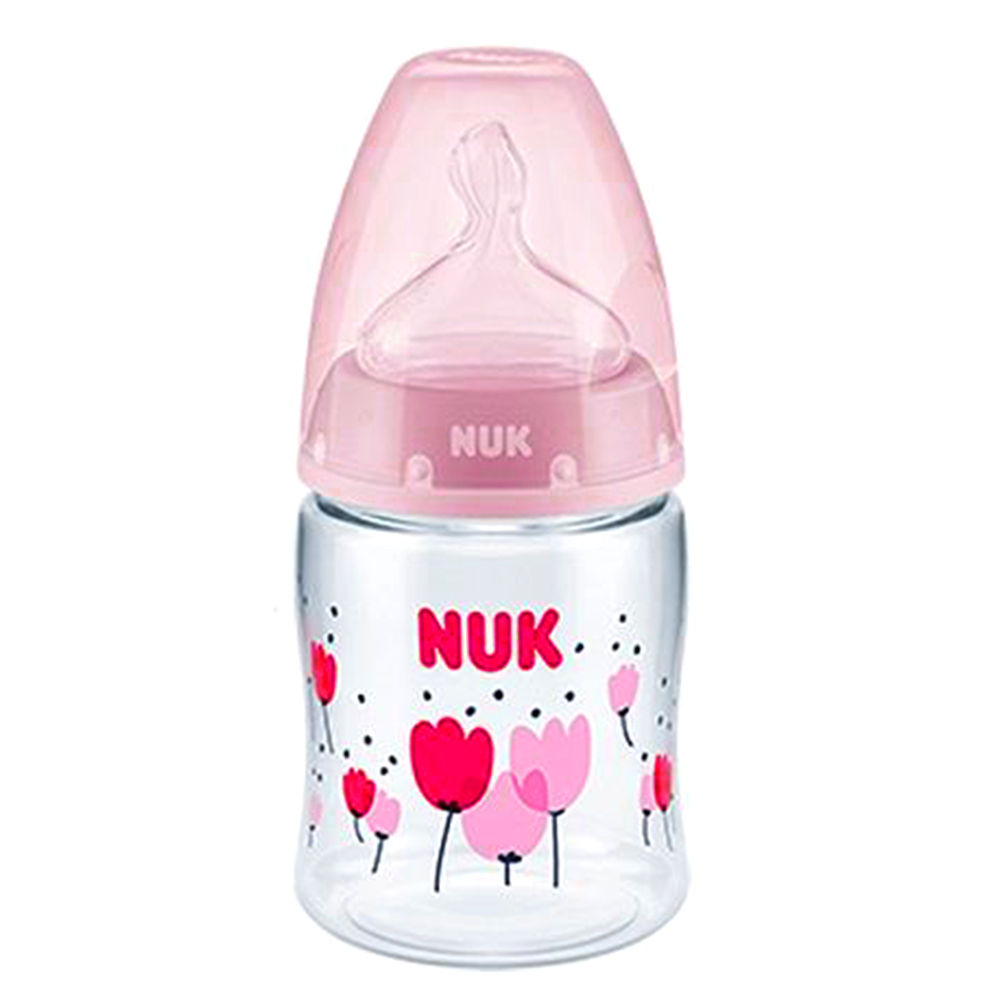 Το μπιμπερό First Choice+ της NUK διαθέτει φιάλη με Δείκτη Ελέγχου Θερμοκρασίας, προλαμβάνοντας έτσι το τάισμα του μωρού  με πολύ ζεστή τροφή. Ο Δείκτης έχει τη μορφή θερμομέτρου και το χρώμα μεταβάλλεται ανάλογα με τη θερμοκρασία του περιεχομένου της φιάλης. Μελλοντικά, αυτή η λειτουργία βοηθά τους γονείς και στην εύρεση της ιδανικής θερμοκρασίας της βρεφικής τροφής κατά το τάισμα. Επιπλέον, η θηλή σιλικόνης σχεδιάστηκε με βάση το σχήμα που παίρνει το στήθος της μητέρας κατά τον θηλασμό και αφήνει στη γλώσσα και στις σιαγόνες αρκετό χώρο για να γίνονται φυσικά οι θηλαστικές κινήσεις. Είναι διαθέσιμο σε διαφορετικά χρώματα και σχέδια.