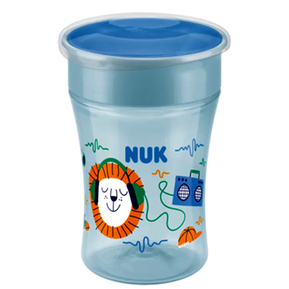 Το Ποτηράκι NUK Magic Cup δίνει τη δυνατότητα στα παιδιά να πίνουν σαν ενήλικες: σαν να πίνουν από κανονικό ποτήρι και απ’όλες τις πλευρές. Η μαγική διαφορά: το ποτήρι δεν στάζει. Ένας δίσκος σιλικόνης σφραγίζει το καπάκι από μέσα. Έτσι, το να πίνουν γίνεται παιχνιδάκι για τα παιδιά: αρκεί να ασκήσουν πίεση με το στόμα τους στο χείλος του ποτηριού και ο λεπτός δίσκος που το σφραγίζει ανοίγει.