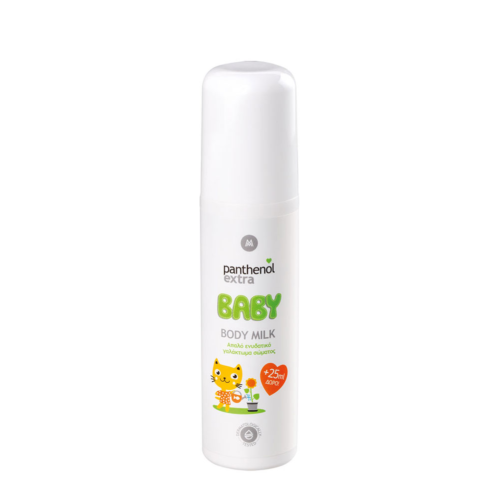Aπαλό ενυδατικό γαλάκτωμα από τη σειρά Baby της Panthenol extra ειδικά σχεδιασμένο για την ευαίσθητη βρεφική επιδερμίδα.