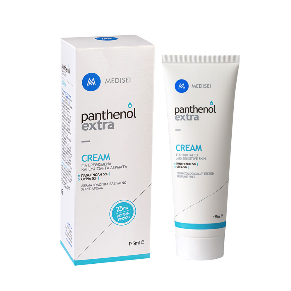 Επιλέξτε την Panthenol Extra Cream με 5% πανθενόλη (προβιταμίνη Β5) και 5% ουρία για εντατική φροντίδα και ενυδάτωση της επιδερμίδας σας. Η Panthenol Extra Cream ενυδατώνει βαθιά και επιταχύνει την ανάπλαση του δέρματός σας. Συνίσταται στις περιπτώσεις, που το δέρμα είναι ερεθισμένο, αφυδατωμένο και ξηρό, όπως μετά από ηλιακά ή ήπια θερμικά εγκαύματα, έκθεση σε έντονες καιρικές συνθήκες, π.χ. κρύο, αέρας, κ.λ.π. Επίσης όταν το δέρμα είναι ταλαιπωρημένο με σκασίματα ή μικροεκδορές από διάφορες δραστηριότητες ή ερεθισμένο από χρήση απορρυπαντικών. Η Panthenol Extra Cream απορροφάται γρήγορα και δεν αφήνει ίχνη λιπαρότητας. Κατάλληλη για κάθε τύπο δέρματος.