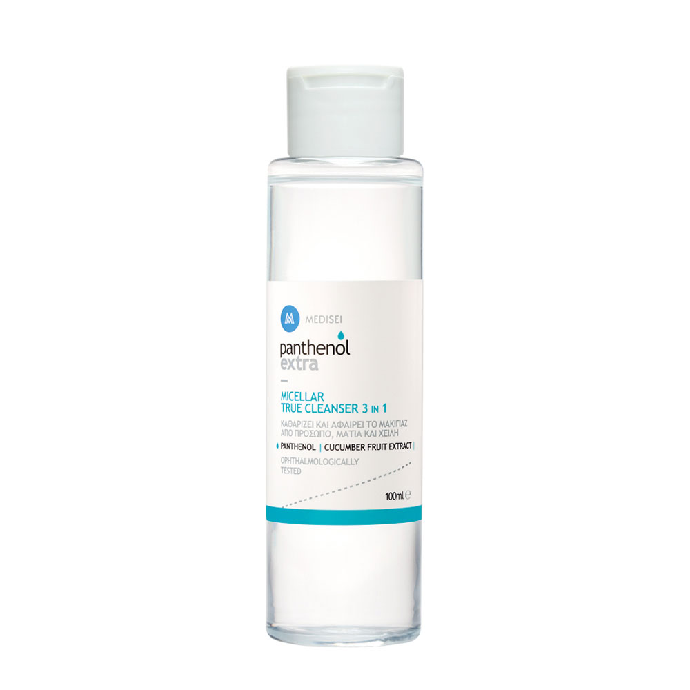 Αφαιρέστε απαλά και αποτελεσματικά, το μακιγιάζ από το πρόσωπο, τα μάτια και τα χείλη. Το Panthenol Extra Micellar True Cleanser 3 in 1 περιέχει πανθενόλη και εκχύλισμα αγγουριού ενώ η μεγάλη του περιεκτικότητα σε βιταμίνες, λιπαρά οξέα και σε αντιοξειδωτικά στοιχεία χαρίζουν στην επιδερμίδα φρεσκάδα και λάμψη. Απομακρύνει ρύπους και λιπαρότητα, αφήνοντας την επιδερμίδα απαλή, καθαρή και ενυδατωμένη. Έχοντας ήπια σύνθεση, είναι κατάλληλο ακόμη και για τις πιο ευαίσθητες επιδερμίδες.