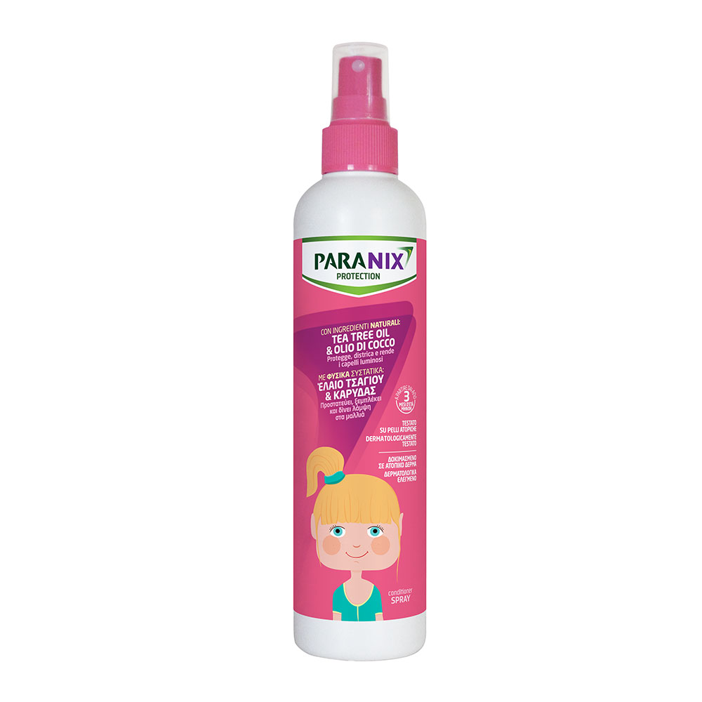 Girl: Προστατεύει από τις φθείρες, ξεμπλέκει και δίνει λάμψη στα μαλλιά Χάρη στην αποκλειστική του σύνθεση με Έλαιο τσαγιού, Έλαιο καρύδας και Διμεθικόνη, το Paranix Protection Spray διασφαλίζει τη φροντίδα και την προστασία των παιδικών μαλλιών.