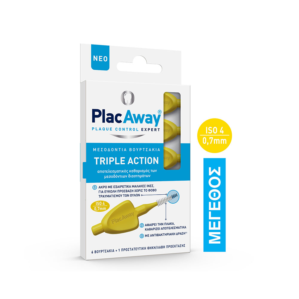 Plac Away Μεσοδόντια Βουρτσάκια Triple Action με Τριπλή Δράση για αποτελεσματικό καθαρισμό των μεσοδόντιων διαστημάτων