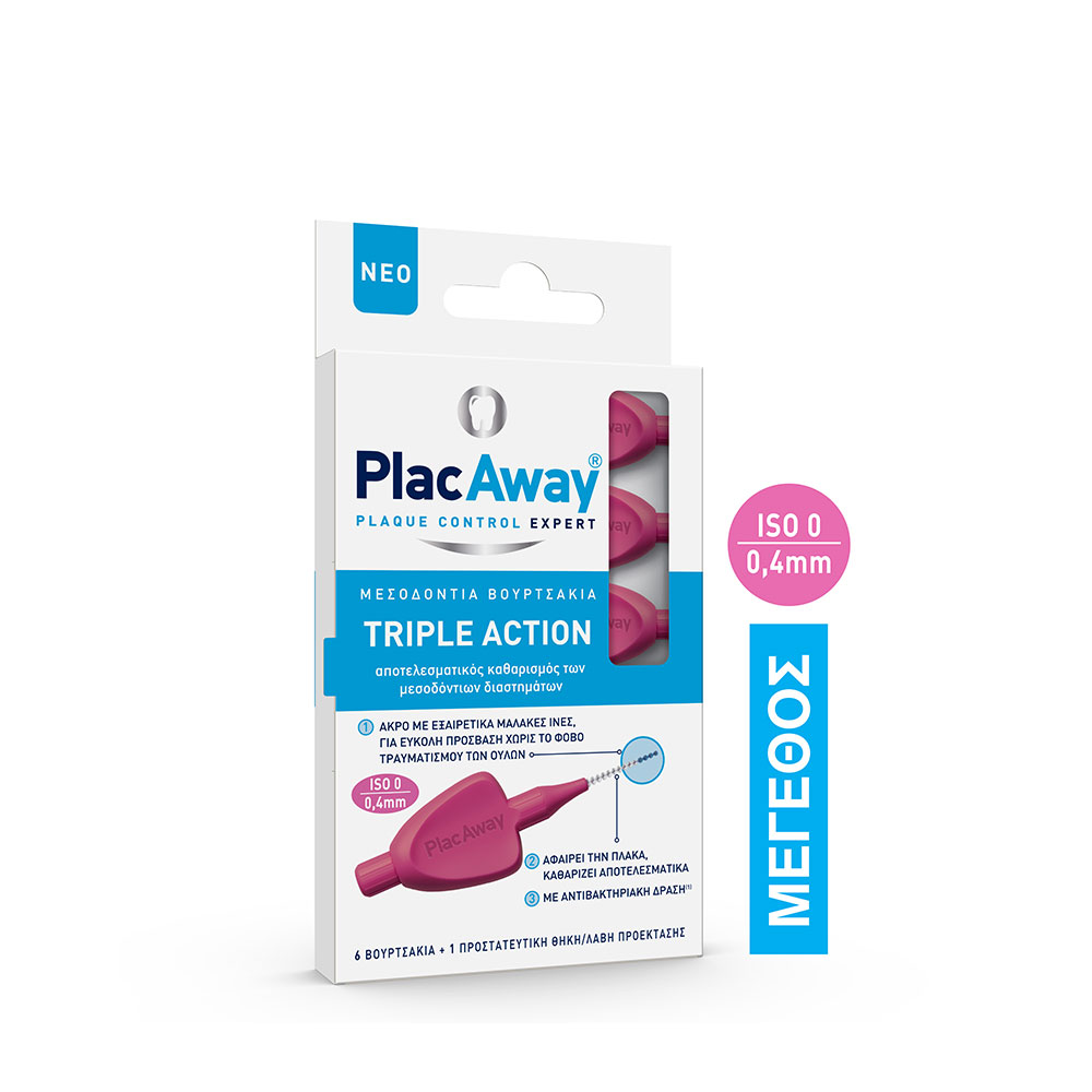 Plac Away Μεσοδόντια Βουρτσάκια Triple Action με Τριπλή Δράση για αποτελεσματικό καθαρισμό των μεσοδόντιων διαστημάτων
