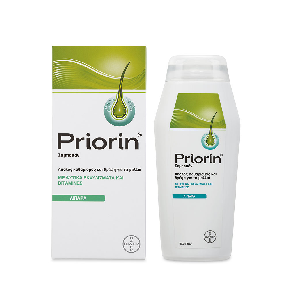 Το Σαμπουάν Priorin® καθαρίζει απαλά τα μαλλιά και τα θρέφει. Το φυτικό εκχύλισμα μελίνης και η Προβιταμίνη Β5 που περιέχει, θρέφουν τη ρίζα και προσφέρουν διαρκή ενυδάτωση.