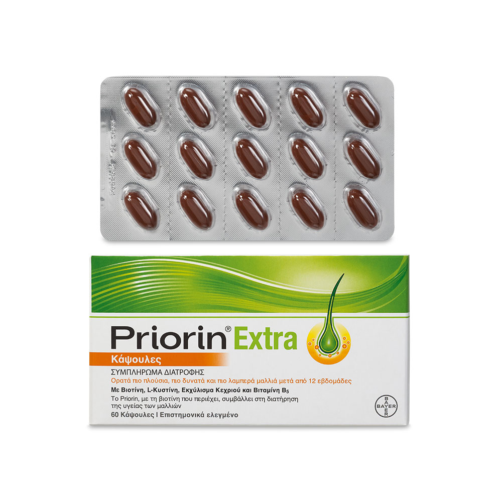 To Priorin® Extra είναι συμπλήρωμα διατροφής σε μορφή κάψουλας για τη διατήρηση της υγείας των μαλλιών. Ορατά πιο πλούσια πιο δυνατά και πιο λαμπερά μαλλιά σε 12 εβδομάδες.