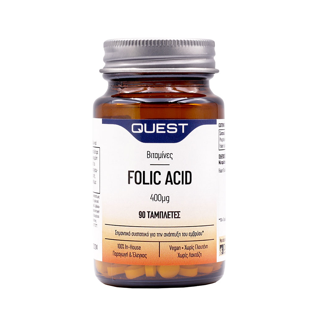 Το Folic Acid της Quest είναι συμπλήρωμα διατροφής και δεν υποκαθιστά μια ισορροπημένη διατροφή. Αρ. Γν. ΕΟΦ: 31953/01-10-1998.
