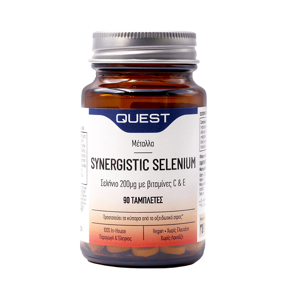 Το Synergistic Selenium της Quest είναι συμπλήρωμα διατροφής και δεν υποκαθιστά μια ισορροπημένη διατροφή. Αρ. Γν. ΕΟΦ: 64058/12-11-2004.