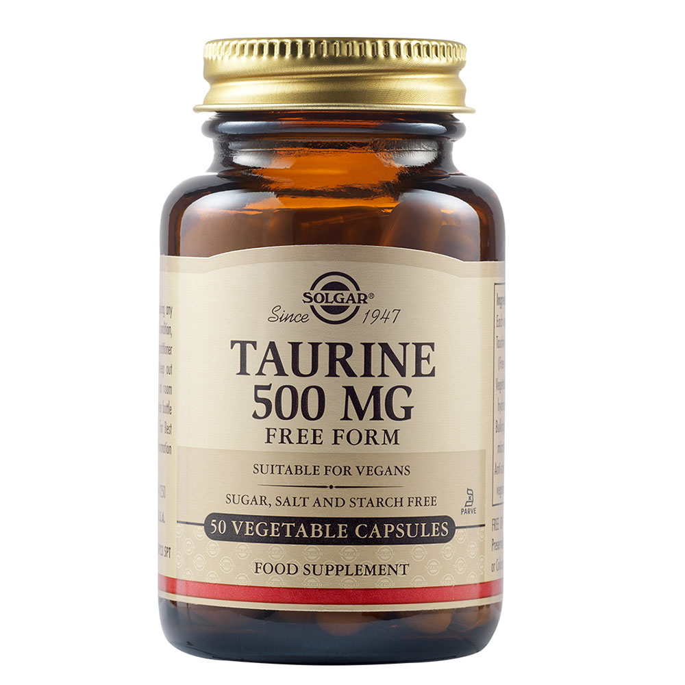 Το Taurine 500mg της SOLGAR περιέχει το θειούχο αμινοξύ ταυρίνη, το οποίο παρουσιάζει οφέλη για τον εγκέφαλο, την καρδιά και τους οφθαλμούς. Ιδανικό για άτομα που ασκούν έντονη σωματική άσκηση.