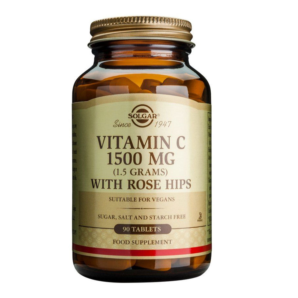 Η Vitamin C with Rose Hips 1500mg της SOLGAR παρέχει βιταμίνη C, μια αντιοξειδωτική βιταμίνη απαραίτητη για τη γενικότερη υγεία του οργανισμού και ειδικότερα την αποτελεσματική λειτουργία του ανοσοποιητικού συστήματος, μαζί με καρπούς αγριοτριανταφυλλιάς (Rose Hips), φυσικό συμπαράγοντα που επιταχύνει και μεγιστοποιεί την απορρόφηση και αποτελεσματικότητα της βιταμίνης C.