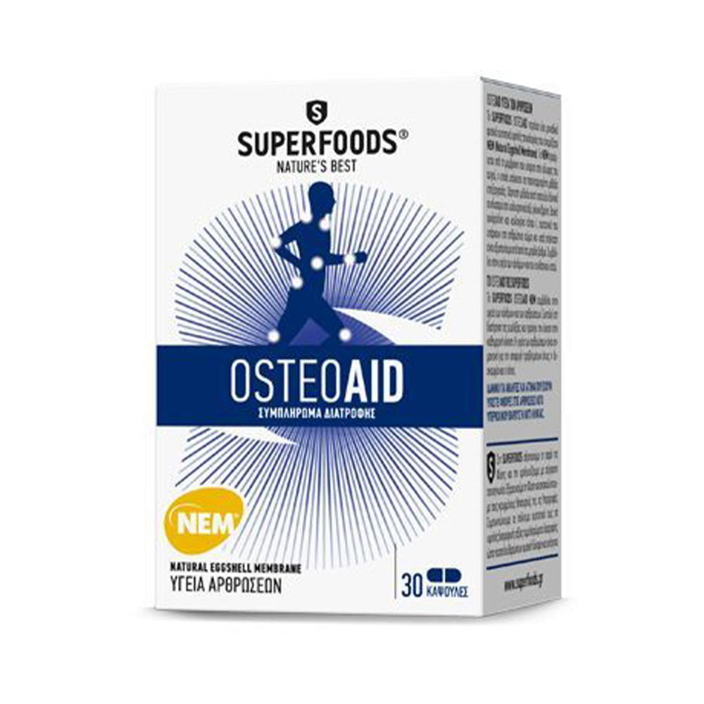 Το Superfoods Osteoaid αποτελεί μια φόρμουλα η οποία βοηθά στην υγεία των αρθρώσεων, έχοντας ευεργετική δράση στη μείωση του πόνου, της δυσκαμψίας και την προστασία του χόνδρου.